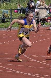 Moving to the field events, the long jump saw a close competition, Clare having to settle for 2nd place by 2cm with 4.46 and Isla Ladds leaping 4.43 for a B string win, Quinn and McCurtin both cleared 1.25 in the high jump for 3rd and 1st places.
